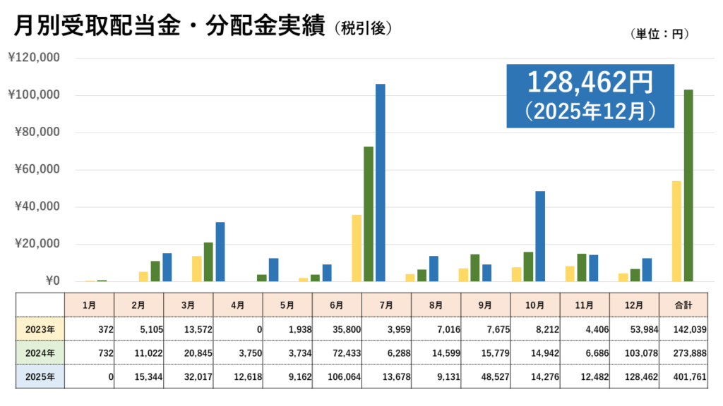 2025年12月の受取配当金額=128,462円
