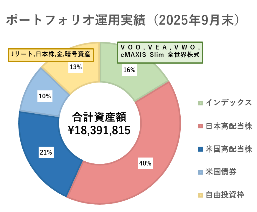 さて、それでは2025年9月末時点のポートフォリオを紹介します。